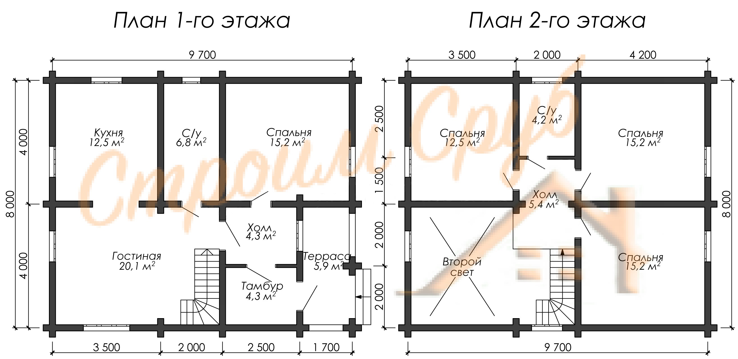 - Высота 2-го этажа 2,7 метра.
