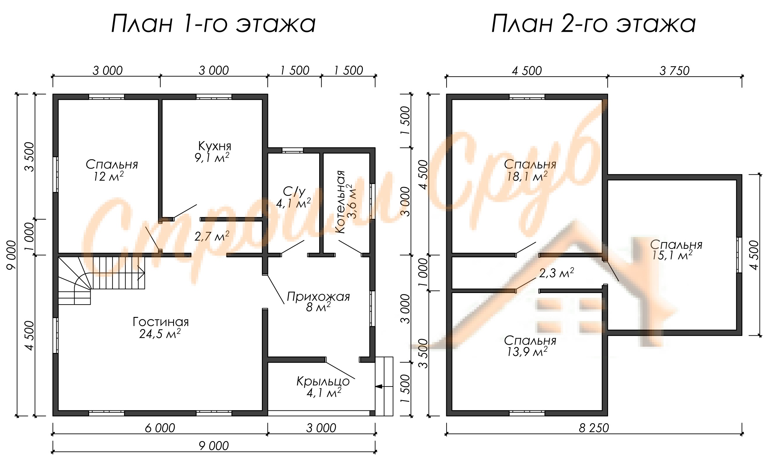 - Высота 1-го этажа 2,5 метра.
